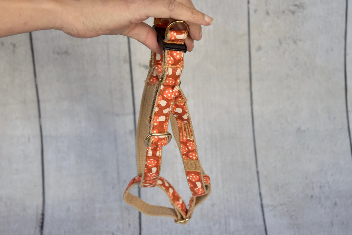 All of our accessories are made on lightweight soft cotton webbing. We use different fabrications, sourced from all over the world, accompanied by solid brass fittings and an adjustable collar. All of our products are handmade and assembled in San Francisco, California.