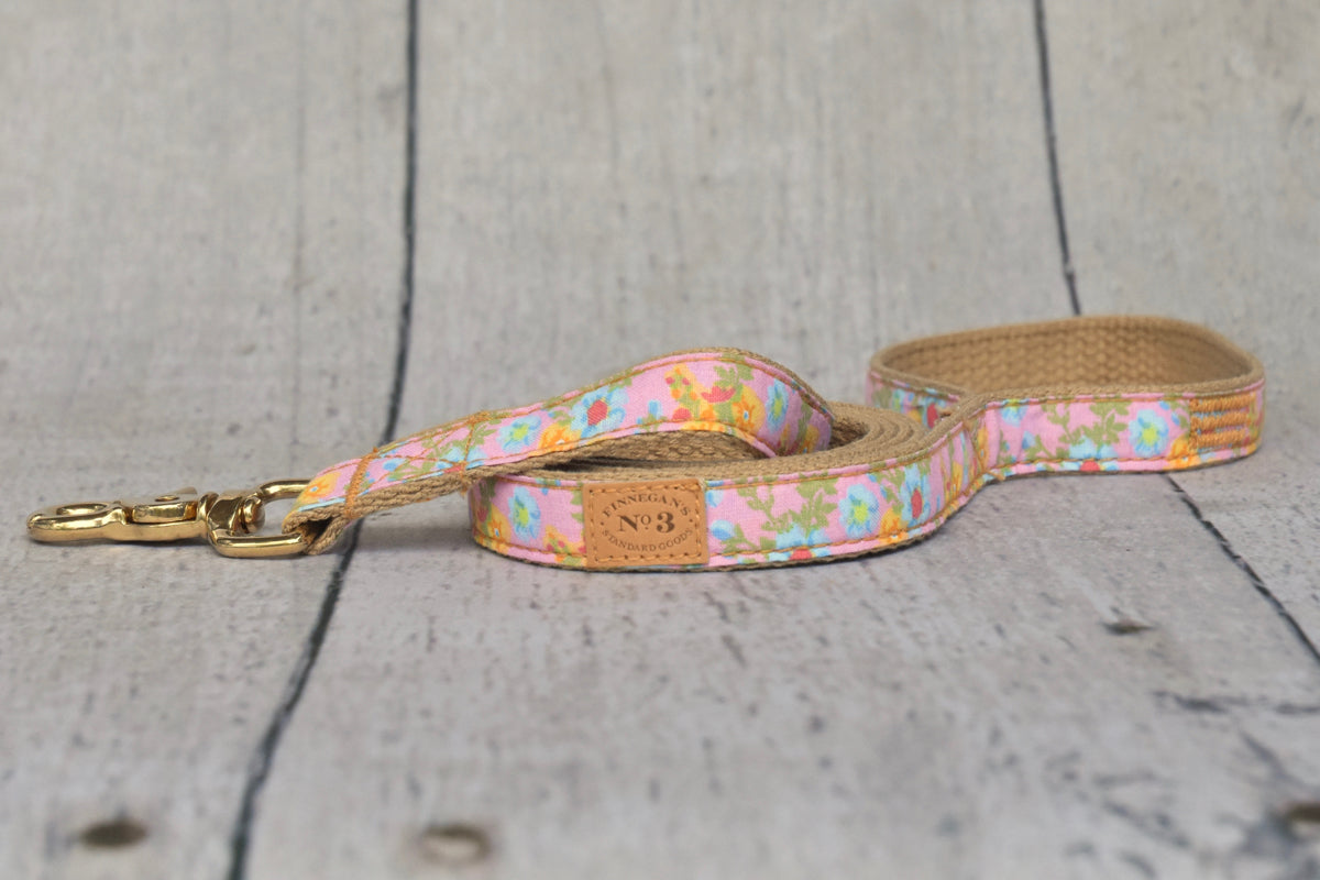 All of our accessories are made on lightweight soft cotton webbing. We use different fabrications, sourced from all over the world, accompanied by solid brass fittings and an adjustable collar. All of our products are handmade and assembled in San Francisco, California.. This is a great lead to add to your collection! All our leads are 5 feet long. These leads are all one of a kind- SO each stripe on your pups lead is special just like you pup!