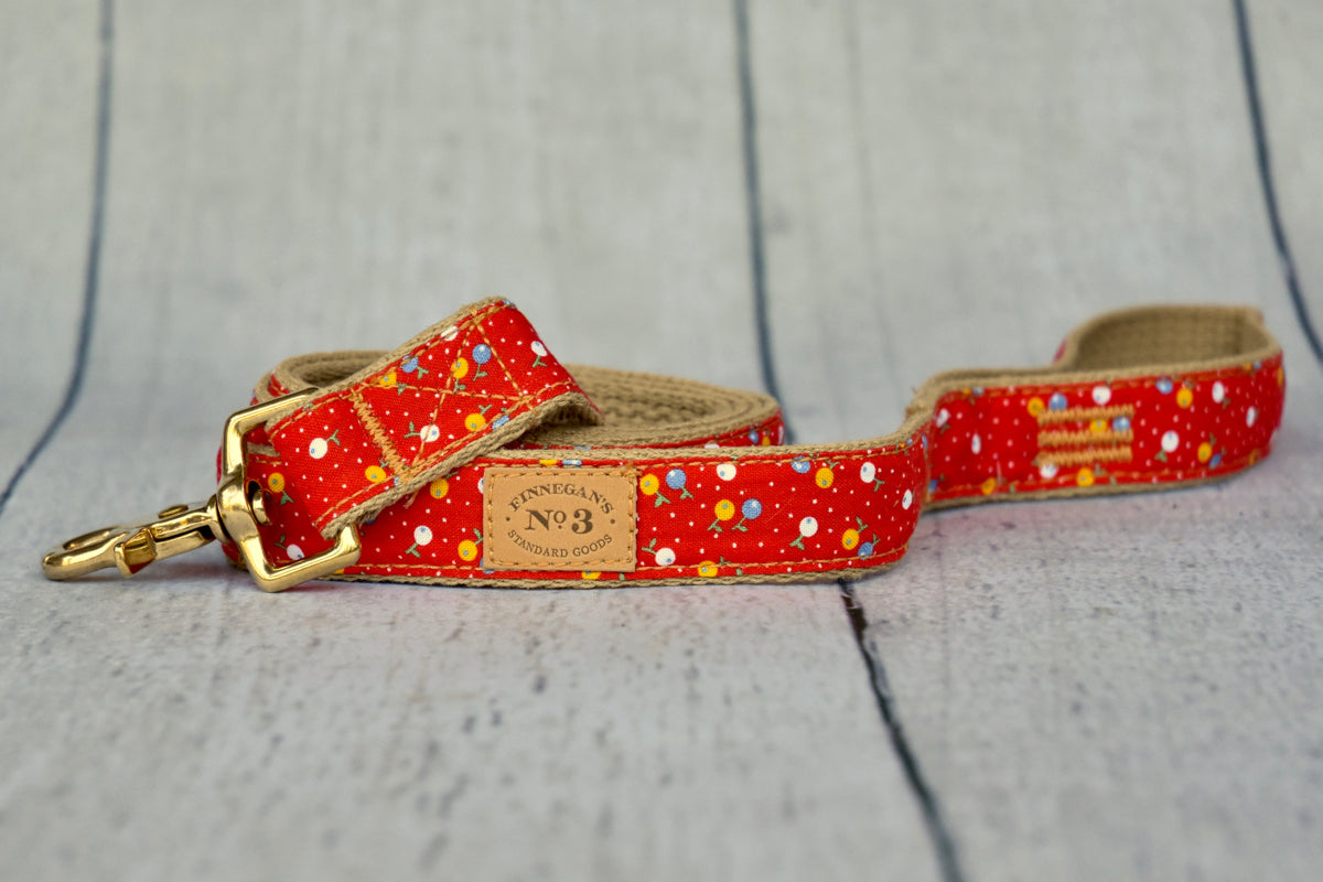 All of our accessories are made on lightweight soft cotton webbing. We use different fabrications, sourced from all over the world, accompanied by solid brass fittings and an adjustable collar. All of our products are handmade and assembled in San Francisco, California.