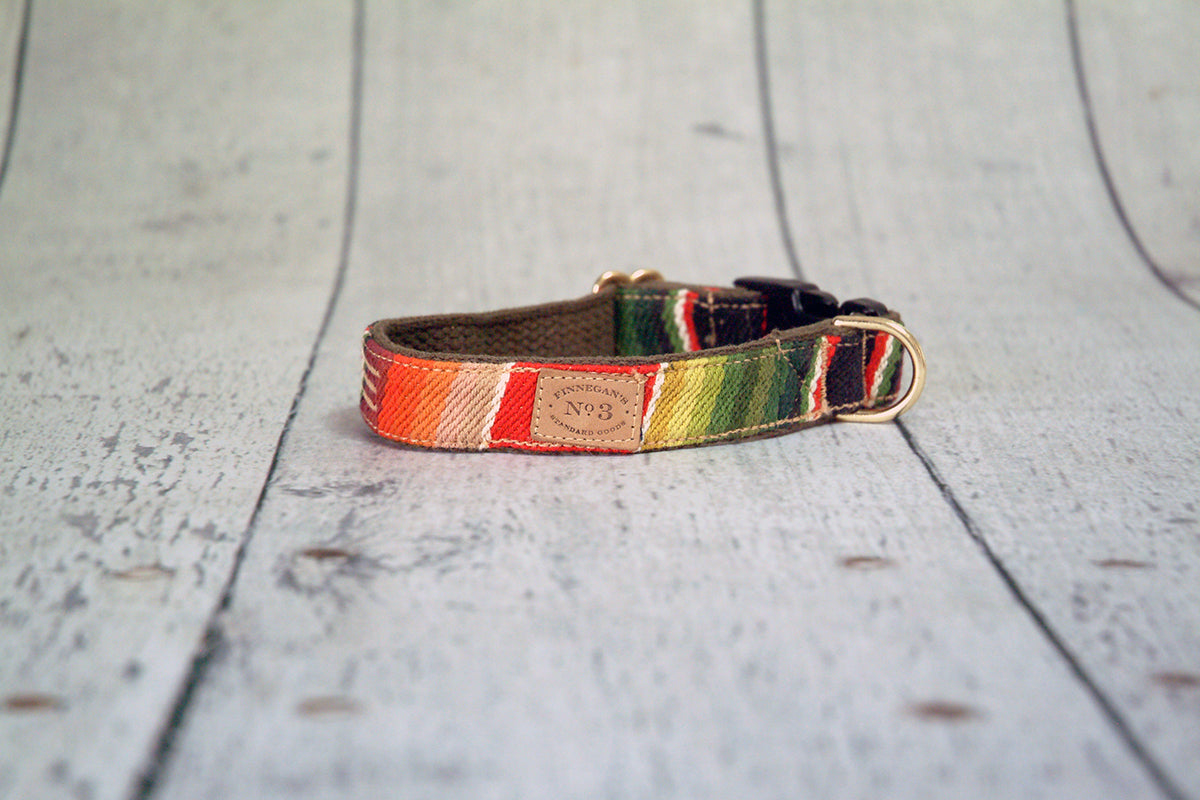 All of our accessories are made on lightweight soft cotton webbing. We use different fabrications, sourced from all over the world, accompanied by solid brass fittings and an adjustable collar. All of our products are handmade and assembled in San Francisco, California.