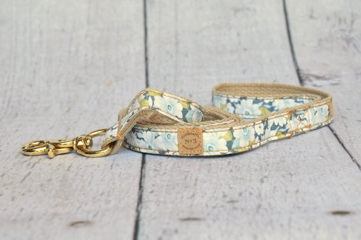 All of our accessories are made on lightweight soft cotton webbing. We use different fabrications, sourced from all over the world, accompanied by solid brass fittings and an adjustable collar. All of our products are handmade and assembled in San Francisco, California. Our 3/4 width collar is great for our smaller canine friends- or a larger breed puppy. Remember a matching leash because everyone loves to match! The small goes to an 11 inch neck and a medium to a 14 inch neck. Wash your collar in the washing machine or Diswasher and lay flat to dry. Remember your pups only true accessory is their collar- they need more then one!