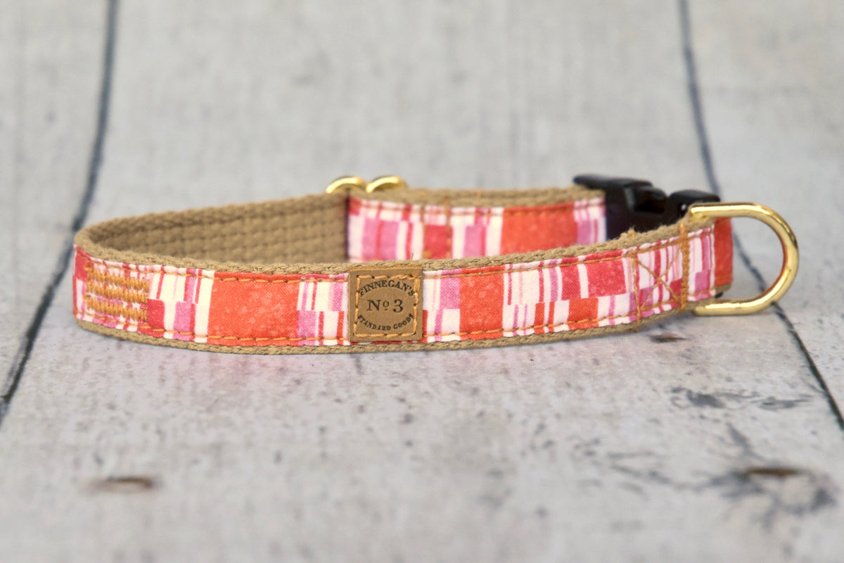 All of our accessories are made on lightweight soft cotton webbing. We use different fabrications, sourced from all over the world, accompanied by solid brass fittings and an adjustable collar. All of our products are handmade and assembled in San Francisco, California.