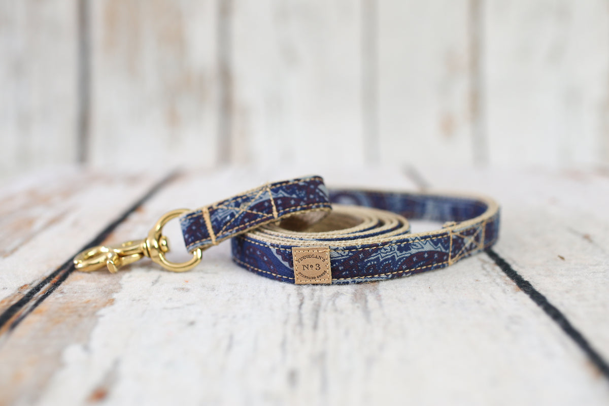 All of our accessories are made on lightweight soft cotton webbing. We use different fabrications, sourced from all over the world, accompanied by solid brass fittings and an adjustable collar. All of our products are handmade and assembled in San Francisco, California. *Please note that these leads are one-of-a-kind and unique – each matches a different section of the collar!