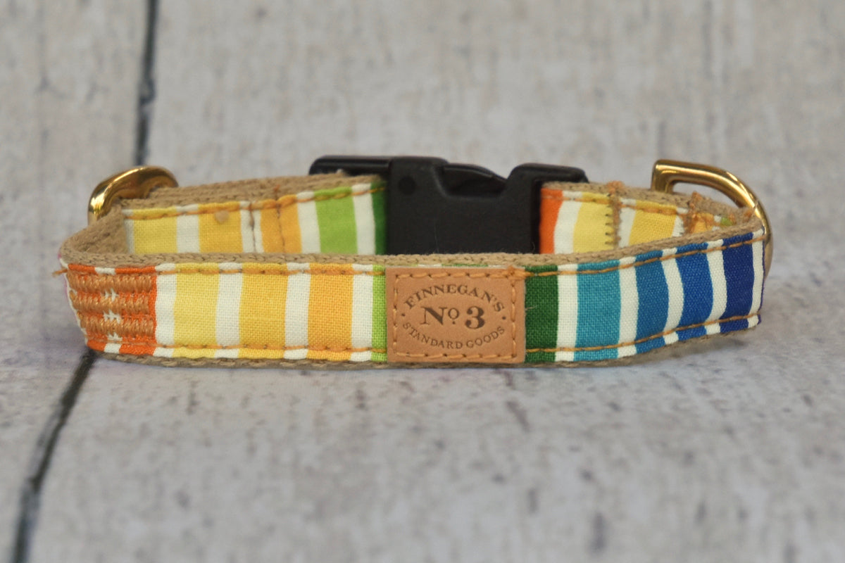 All of our accessories are made on lightweight soft cotton webbing. We use different fabrications, sourced from all over the world, accompanied by solid brass fittings and an adjustable collar. All of our products are handmade and assembled in San Francisco, California.